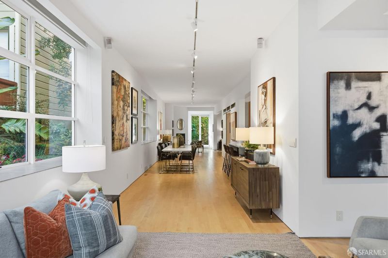 If you love the energy of a loft but dream of living in Noe Valley, this exceptional garden residence offers the best of both worlds. Set amid lush greenery, this tranquil urban oasis features expansive windows framing verdant garden outlooks of your deeded yard, creating a seamless connection between indoor comfort and outdoor serenity. The open-concept floor plan showcases unobstructed sightlines, refined finishes, and a flexible sleeping area. The designer kitchen is beautifully appointed with new custom cabinetry, quartz countertops, a Thermador refrigerator, and an industrial-style range perfect for the discerning home chef. An inviting dining area and generous living space provide an elegant setting for entertaining, complemented by abundant built-in storage. The updated bath is finished with quartz counters and modern cabinetry, while a spacious walk-in closet offers exceptional storage. Additional highlights include a Murphy bed for guests, a powder room, in-unit laundry, and dedicated storage units in the garage. Just outside is your private, deeded garden an idyllic retreat perfect for morning coffee or an afternoon in the sun. One-car parking completes this rare and stylish offering in one of San Francisco's most desirable neighborhoods.