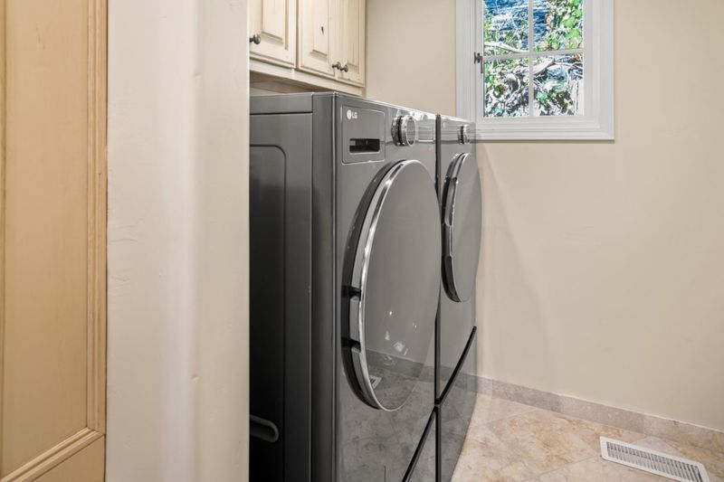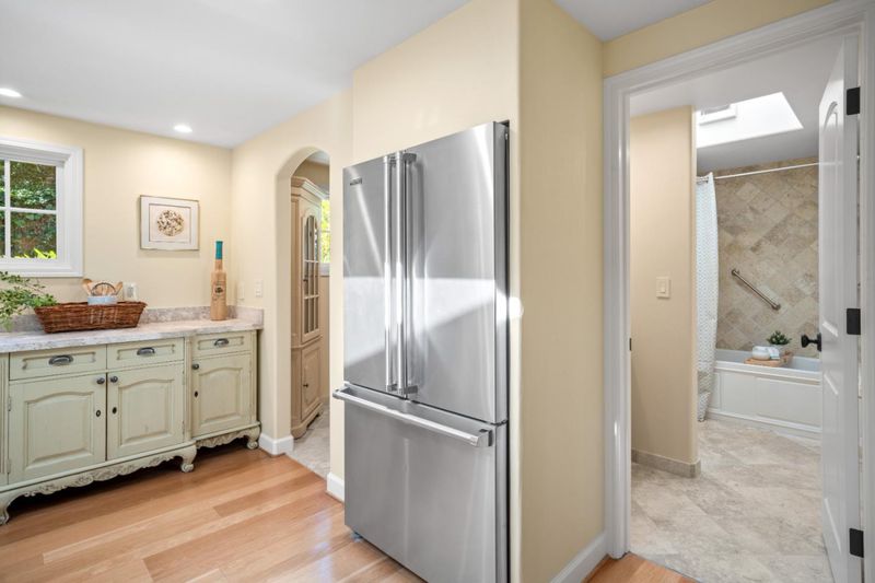 - Countertop - Stone, Exhaust Fan, Garbage Disposal, Hood Over Range, Island with Sink, Microwave, Oven Range - Built-In, Gas, Pantry, Refrigerator, Skylight, Warming Drawer