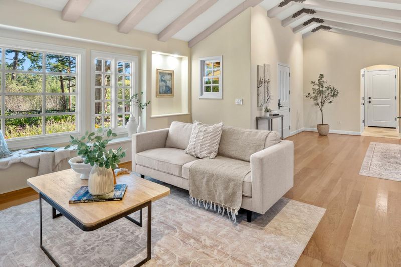 Minutes from downtown Carmel, a world away from ordinary! Welcome to a place where time slows, nature whispers, and every detail tells a story. Tucked behind a private gate on a serene quarter-acre in Carmel, this newly updated, enchanting single-story cottage is more than a home, its a quiet escape. Step through the front porch and into a courtyard filled with charm, where the scent of wisteria lingers and sunlight dances across manicured brick pathways. Inside, the home unfolds with vaulted beam ceilings and soft natural light, courtesy of dual-pane windows. The cottage is dressed in a soothing color palette and refined finishes. At the heart of it all? A chefs kitchen, French cabinetry, premium appliances, a generous pantry, and a stunning eat-in island ready for morning coffees and evening wine. The primary suite offers a walk-in closet and lovely bath. The living room has a cozy fireplace for added warmth and a generous dining area. French doors open in three directions, inviting you to wander through gardens and forested views. Whether you're reading by the fire, dining under the stars, or enjoying the nearby restaurants, beaches and boutiques of Carmel, this rare gem blends timeless style with natural beauty and offers the kind of peace most only dream of.