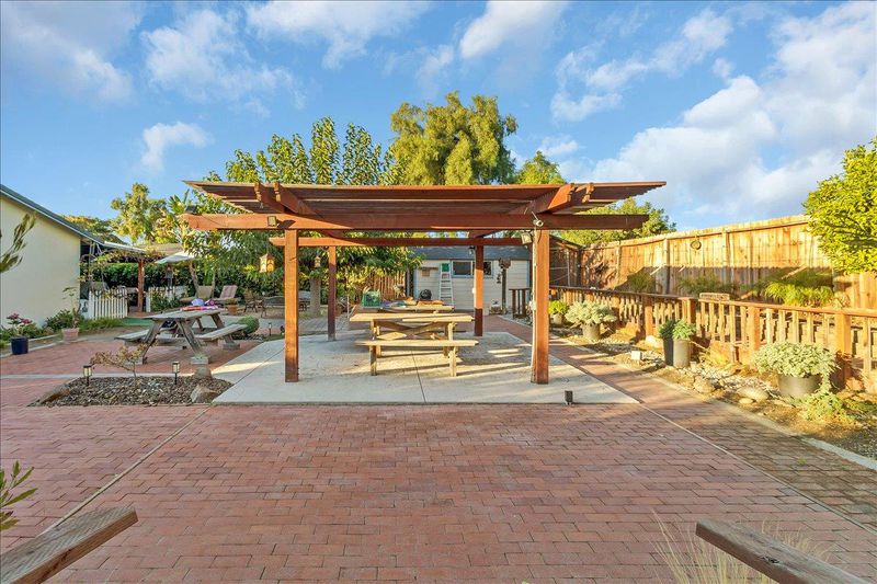 Nestled on a desirable corner lot, this charming 3-bedroom, 1.5-bath home offers a perfect blend of classic character and thoughtful updates. Built in 1961 and spanning approximately 1,500 square feet, the home features a bright living room with a large Anderson picture window that fills the space with natural light. The former garage has been converted fully permitted by the county into a spacious family room, ideal for relaxing or entertaining. The kitchen and the rest of the home is finished with durable laminate flooring throughout. Step outside to enjoy a beautifully landscaped yard with a brick patio and gazebo, surrounded by mature fruit trees and a picket-fenced front yard. The backyard is fully enclosed and includes a tool shed or workshop, perfect for hobbies or extra storage. Additional highlights include a Culligan water softener, a sprinkler system in both the front and back yards, county water service, and a septic system with a new leach line installed in 2011. The home also features a new roof added in 2017 and a recently installed water heater from 2023, this property also offers extra side street parking making it as practical as it is inviting. spacious 9,052 sq ft lot.
