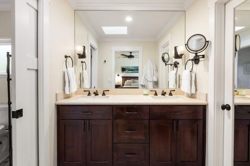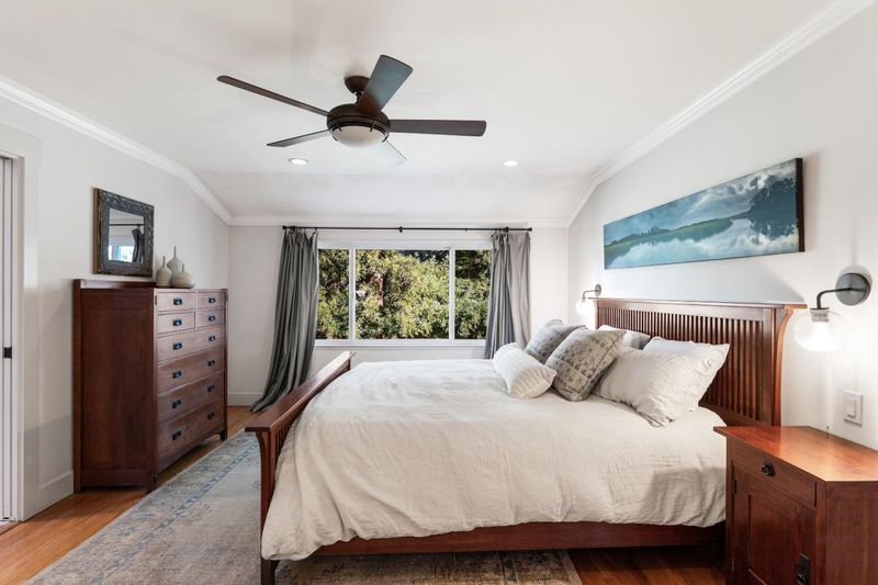 Nestled in a serene enclave on the Stanford campus, this beautifully updated 5- bedroom, 3-bathroom home offers sophisticated comfort and high-utility design.The heart of the home is the open kitchen and family room, where glass doors open to gorgeous gardens. The sun-drenched living room with skylights offers an airy sanctuary while the elegant dining room provides a refined backdrop for hosting. The upper level is a private retreat, featuring four spacious bedrooms including a primary suite with a walk-in closet. A fifth bedroom on the ground floor with a full bath and separate entrance is perfectly suited for guests or a home office. The mudroom and laundry suite keep daily life organized. Outside is a wonderful space to relax and entertain with a large patio, firepit, sport court, and built-in planter boxes. High-efficiency HVAC maintains comfort. Properties this updated, functional, and well-located are a very special find on Stanford campus! Available to qualified Stanford faculty only.