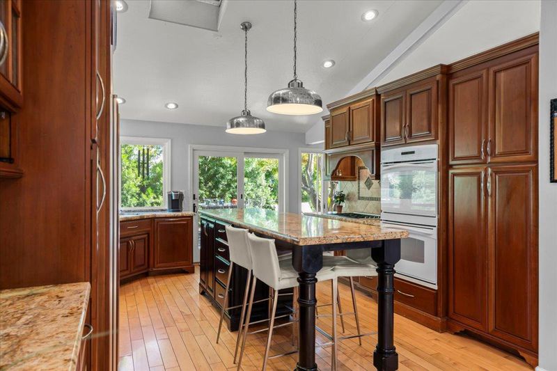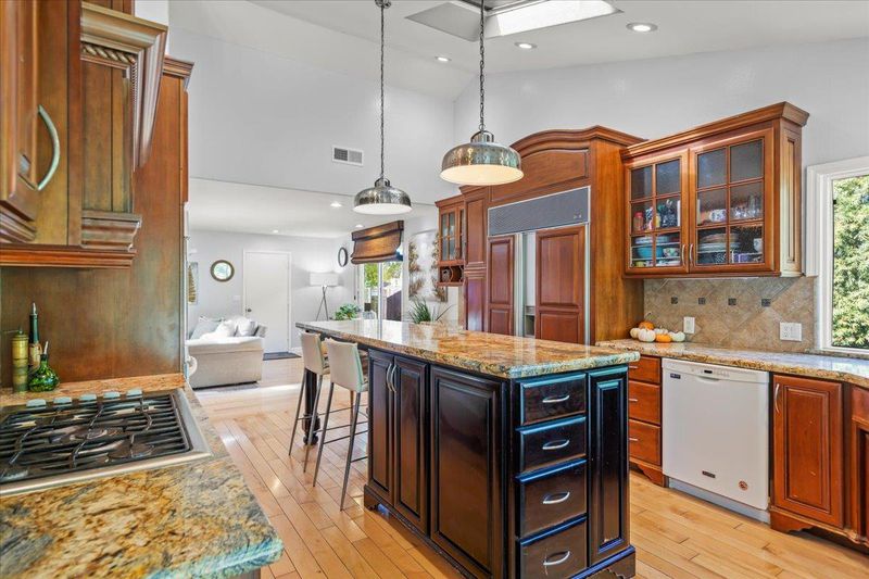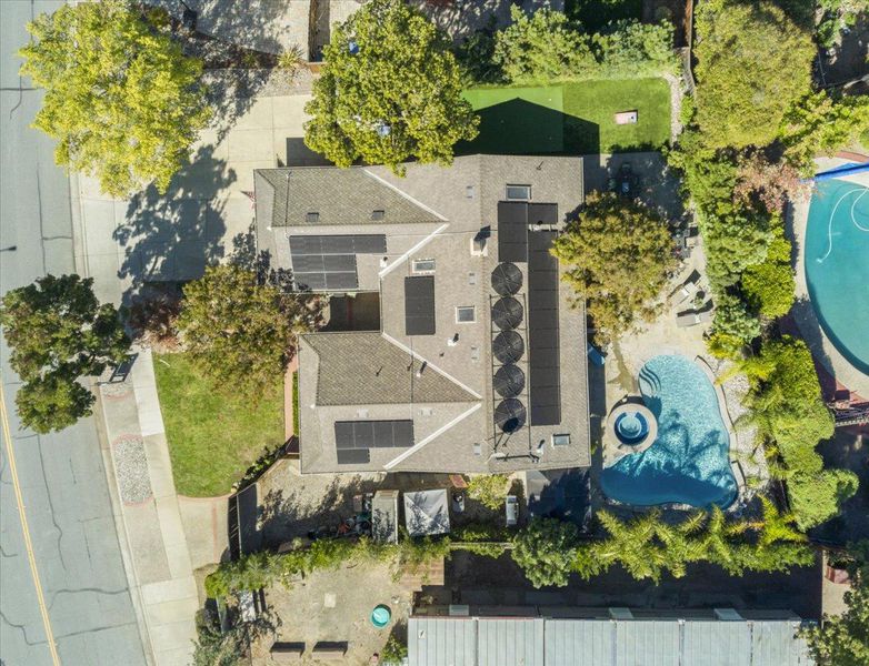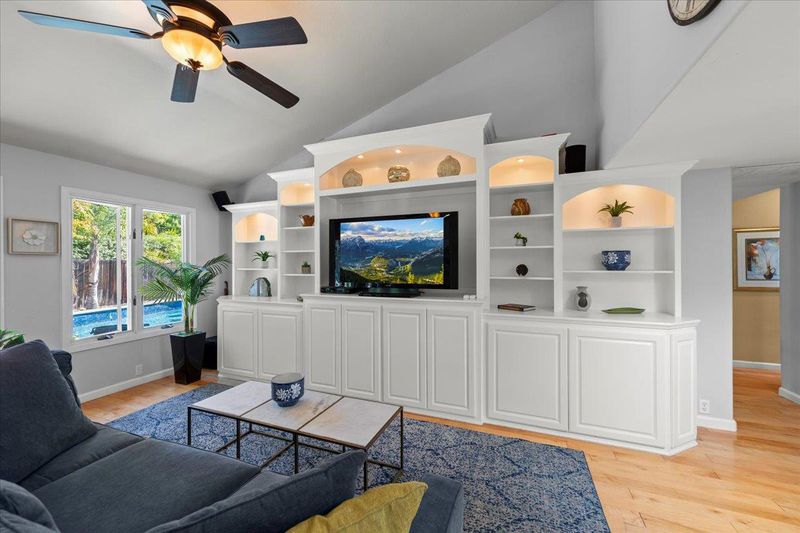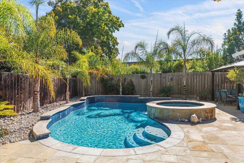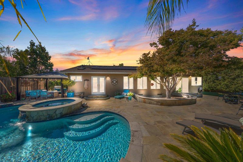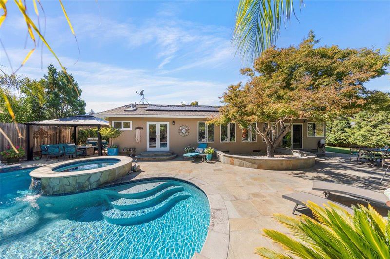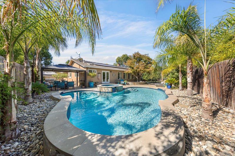 Prime private location SINGLE LEVEL HOME with RV or boat parking too! Just a short walk to top-rated schools, this beautifully remodeled home offers the perfect blend of comfort, style, and functionality. Fully equipped with solar panels, it provides energy efficiency and virtually no electricity costs. Step inside to find gleaming maple hardwood floors, soaring ceilings, and tastefully updated bathrooms. The chefs kitchen is a true centerpiece, featuring a gas range, granite countertops, a spacious island with seating, and ample cabinetry, ideal for everyday living and entertaining. The inviting family room boasts a cozy fireplace, while the separate living room includes built-in custom cabinetry for added convenience. Enjoy elegant meals in the formal dining room overlooking your serene resort backyard. Escape to your private backyard oasis, complete with a sparkling pool and spa perfect for year-round swimming. The outdoor space also includes a BBQ area, covered patio area, putting green, RV/boat parking, and a storage shed. A stunning Japanese maple tree provides natural shade, creating a peaceful, low-maintenance retreat. This home has it all, comfort, efficiency, and a prime location! Solar for pool/spa and home! Excellent Schools Graystone, Bret Harte, Leland High.