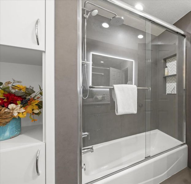 - Primary - Stall Shower(s), Shower over Tub - 1, Tub, Updated Bath