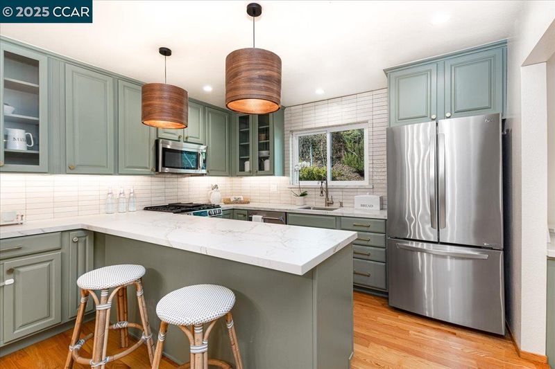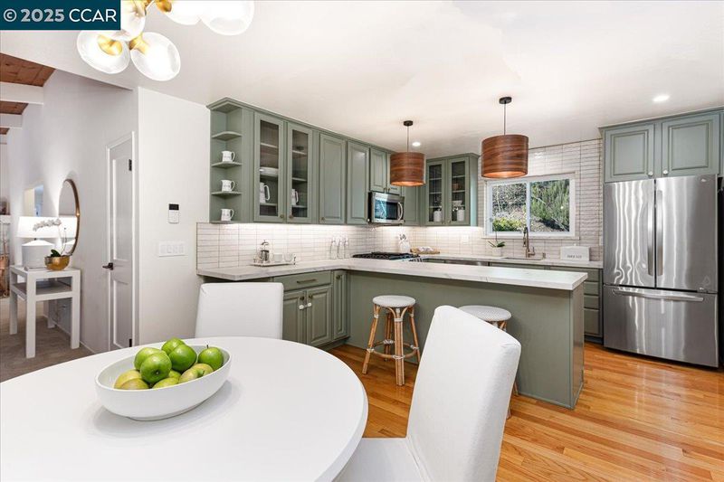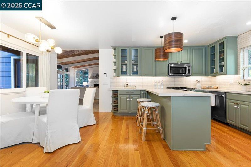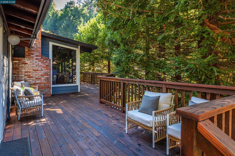 Secluded single-level retreat tucked in the Oakland hills above Montclair Village, offering an open and inviting floor plan ideal for modern living. Step inside to find a light-filled living space with large picture windows framing the beautiful redwoods and scenery. The new homeowner will enjoy the updated kitchen, remodeled in 2024, showcasing premium Dekton countertops, new cabinetry hardware, modern lighting, and stainless-steel appliances - including a new dishwasher, sink, faucet, and range making it both functional and beautiful. The layout is ideal, with bedrooms thoughtfully separated from the main large entertaining spaces to create both privacy and flow. Updates in the last five years include a new bolted foundation, replaced sewer lateral, dual-pane windows, EV charger, new water heater, and a smart Nest thermostat — ensuring peace of mind and efficiency for years to come. Located minutes from Montclair Village shops, dining, commute and trails, this home blends hillside serenity with convenient access to everything the East Bay has to offer.