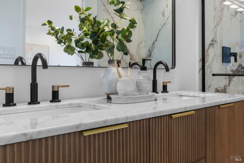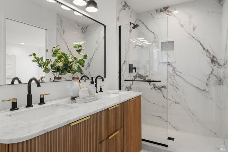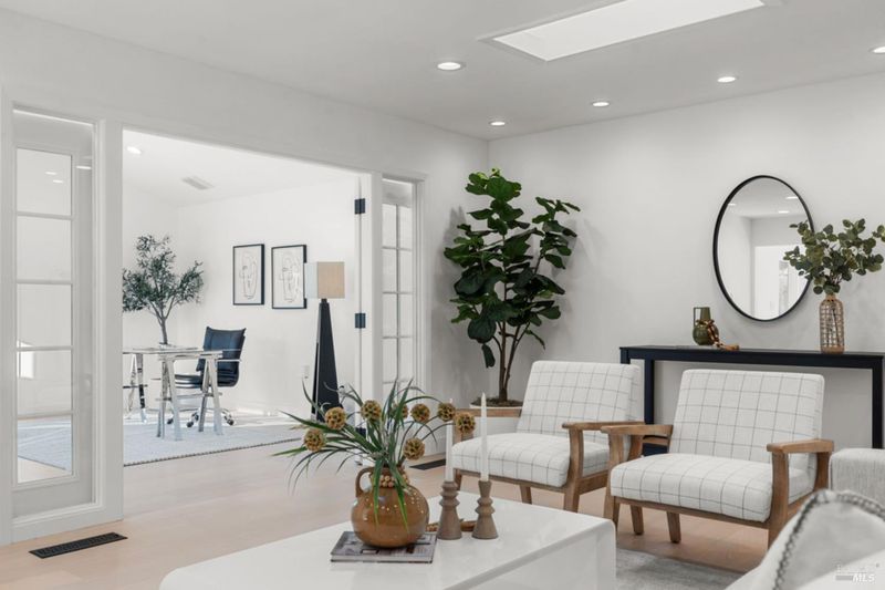 Tucked in Loma Verde, one of Southern Novato's most desirable neighborhoods, every detail was considered in updating this turnkey home inside and out. All new roof, African mahogany front door & patio ensure the exterior spaces are comfortable & stylish, enhanced by mature fruit and shade trees and drought-tolerant professional landscaping. The interior opens to an airy, open-concept gathering space that features vaulted ceilings, Brazilian Oak hardwood floors, solar-powered smart skylights and walls of windows that flood the interior with natural light. Brand-new kitchen features striking two-tone Shaker-style cabinetry, new Forno designer appliances and Kraus sink & fixtures. Both bathrooms have been completely reimagined with a spa-inspired aesthetic & Kohler fixtures. Oversized primary suite offers a quiet retreat with walk-in closet & stunning en suite bath with expansive, glass-enclosed shower. Fresh Benjamin Moore interior & exterior paint give the home a crisp, clean look. Smart home updates, Level 2 Tesla charger, 17 owned solar panels and energy-efficient upgrades provide added peace of mind. Blocks from top-rated Loma Verde Elementary, a California Distinguished School, and steps away from hiking trails, Pacheco Plaza, Nugget Market and the Marin Country Club.