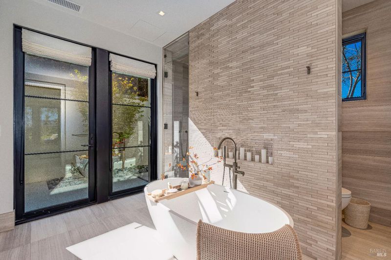 - Double Sinks, Outside Access, Radiant Heat, Shower Stall(s), Steam, Tile, Tub, Window