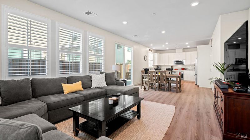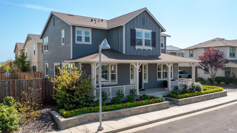 The Willowglen Subdivision epitomizes luxury and sophistication highlighting a variety of classic design homes. The front porch welcomes you with a sitting area for tranquil afternoons. The entryway leads to the living room, dining area, kitchen, and a patio designed for relaxation and social gatherings with a tiled outdoor patio perfect for alfresco dining. On the main floor, a sun-filled bedroom suite with glass French doors includes a walk-in closet and a full bath with a stall shower. The upper level reveals a sunlit open space, ideal for a home office or creative space. The primary bedroom boasts an expansive layout, an impressive walk-in closet, and an ensuite- the bathroom offers dual sinks, stall shower, and a soaking tub. There are two additional bedrooms, with another bath and laundry room with cabinetry on this level. The property includes a two-car-attached garage with interior access enhancing functionality and classic aesthetics. Close to neighborhood park, Sonoma State University, Green Music Center, shopping and much more.