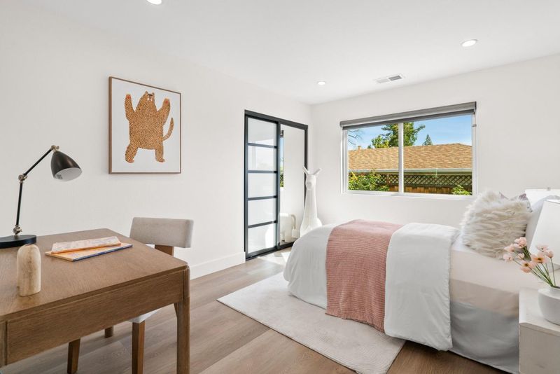 Stunning custom-built residence in one of West San Joses most desirable neighborhoods, showcasing refined design, premium materials, and seamless indoor-outdoor living. The expansive great room blends living and dining areas, highlighted by a striking fireplace feature wall and large sliding doors that fill the space with natural light. At the heart of the home, a designer chefs kitchen impresses with a dramatic Dekton quartz island, WOLF appliances, Sub-Zero refrigerator/wine refrigerator, custom cabinetry, and sophisticated finishes throughout. The thoughtfully designed layout offers exceptional flexibility, including a bedroom with elegant French doors, a private junior suite with backyard access, and a spacious primary retreat with dual patio doors for a bright, serene ambiance. Beautifully appointed bathrooms feature clean, modern design and upscale finishes. The backyard is ideal for both entertaining and everyday enjoyment. Additional upgrades include owned solar panels, whole-house water filtration, and Nest smart climate control. Ideally located near Westgate, Downtown Saratoga, Santana Row, and Valley Fair, with convenient access to major commute routes and top Silicon Valley employers. Served by the sought-after Moreland School District.