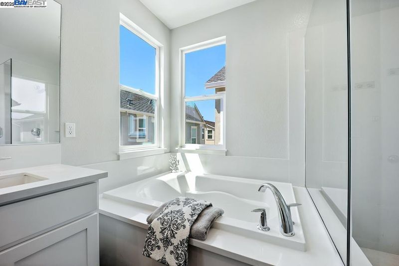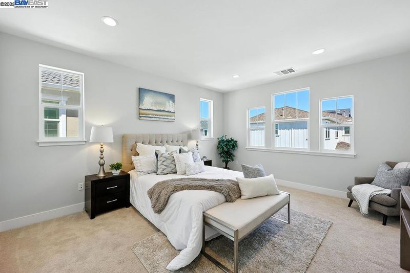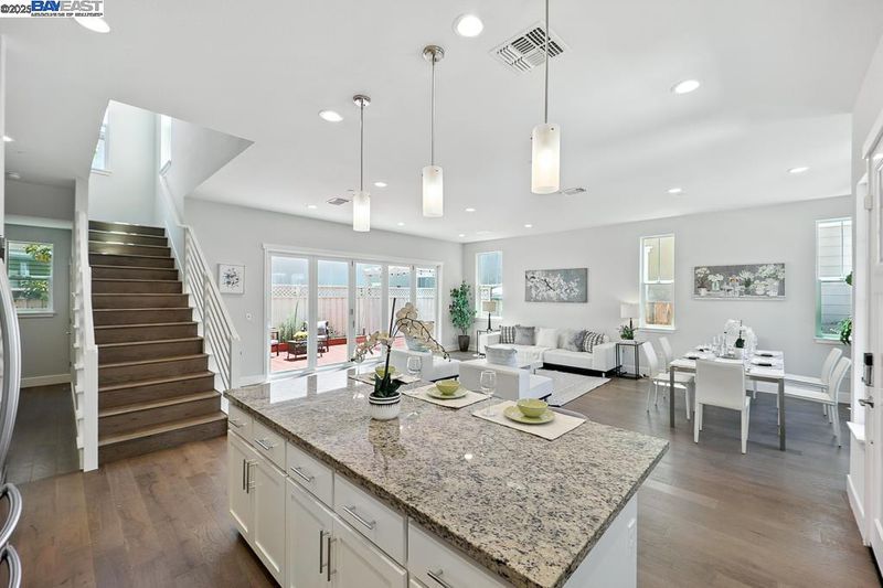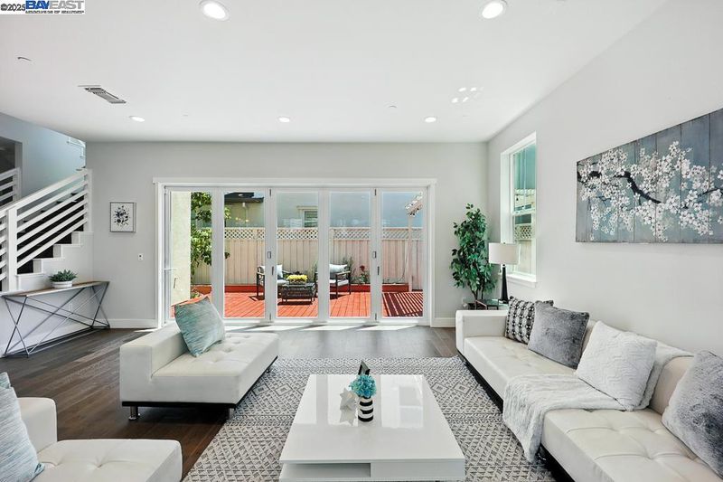 Welcome to this beautiful, modern two-story single-family home in the desirable Glass Bay community—offering the perfect blend of comfort, style, and energy efficiency. With soaring ceilings and 2,293 sq ft of thoughtfully designed living space, this 4-bedroom, 2.5-bathroom home is ideal for both everyday living and entertaining. Enjoy premium engineered hardwood flooring throughout the first floor, staircase, and one of the bedrooms. The gourmet kitchen showcases marble countertops, soft-close drawers, and elegant cabinetry. Recessed LED lighting brightens the living, dining, and bedrooms. Additional features include a prewiring for EV charger, water softener, and a beautifully upgraded backyard with a stylish deck and pergola—perfect for relaxing or hosting. Glass Bay offers parks, a kids' playground, BBQ/picnic areas, and access to scenic trails at Don Edwards Wildlife Refuge and Coyote Hills Regional Park. Commuters will love the proximity to the Dumbarton Bridge, I-880, and top employers like Meta and Tesla—with diverse dining options nearby for food lovers.