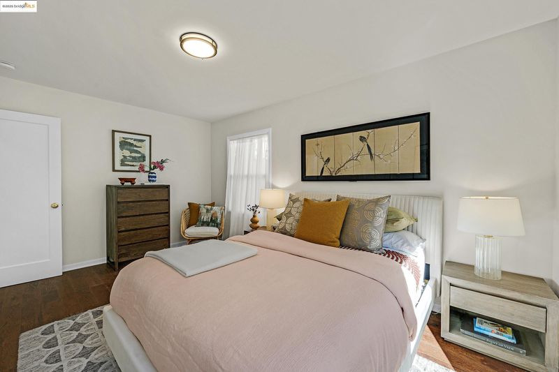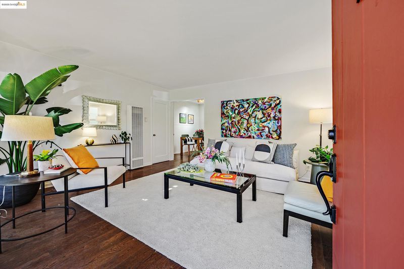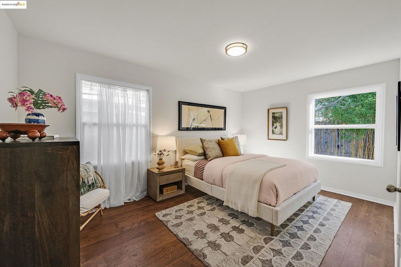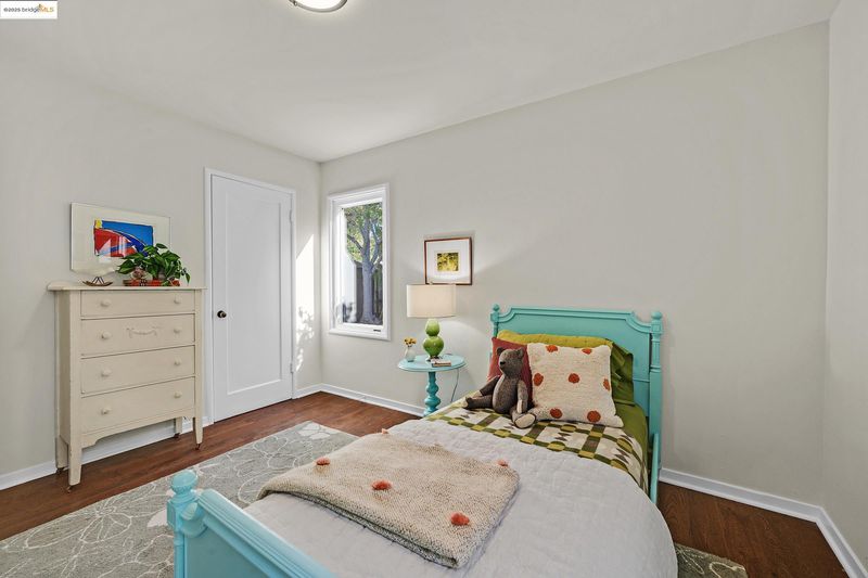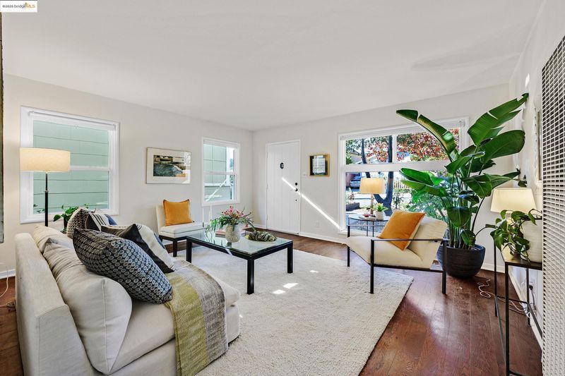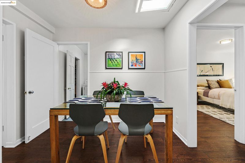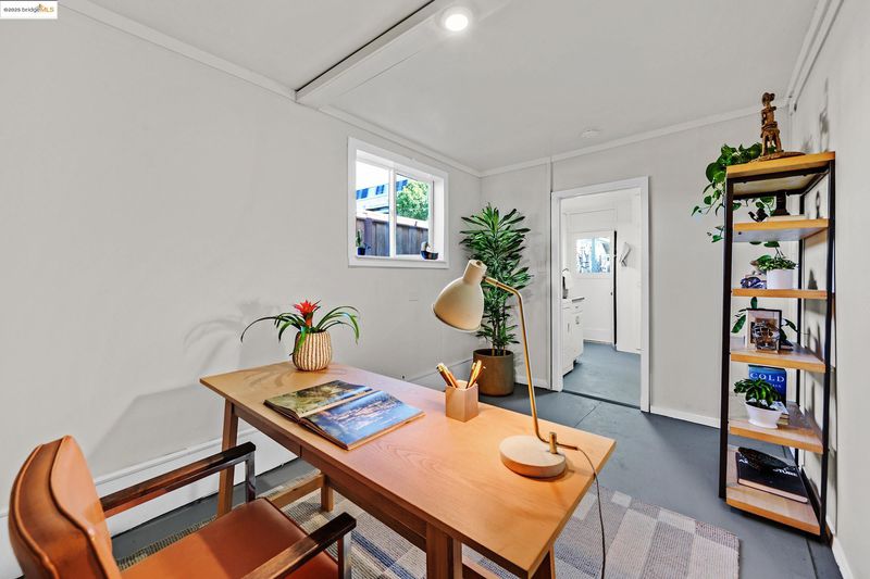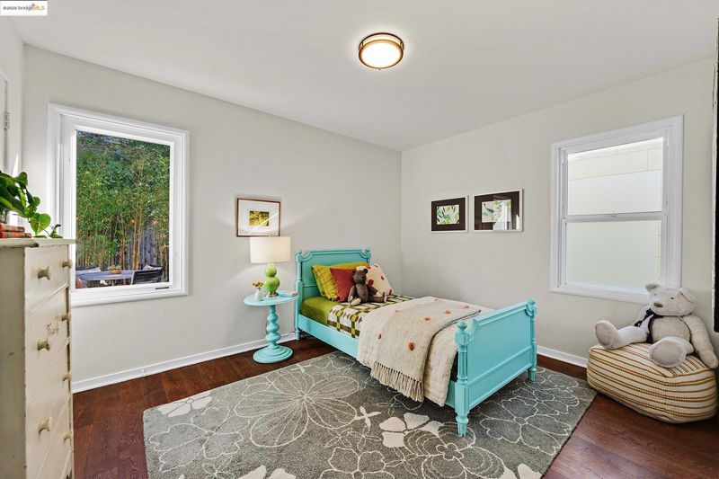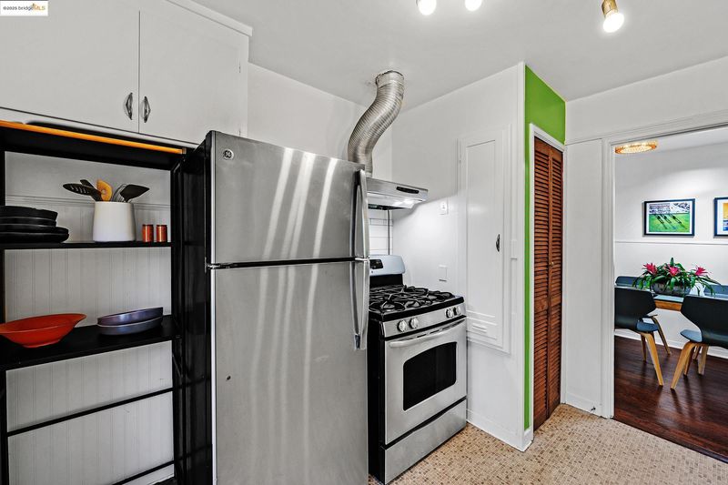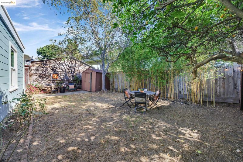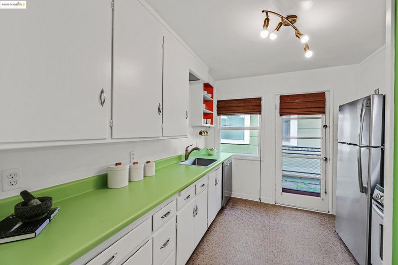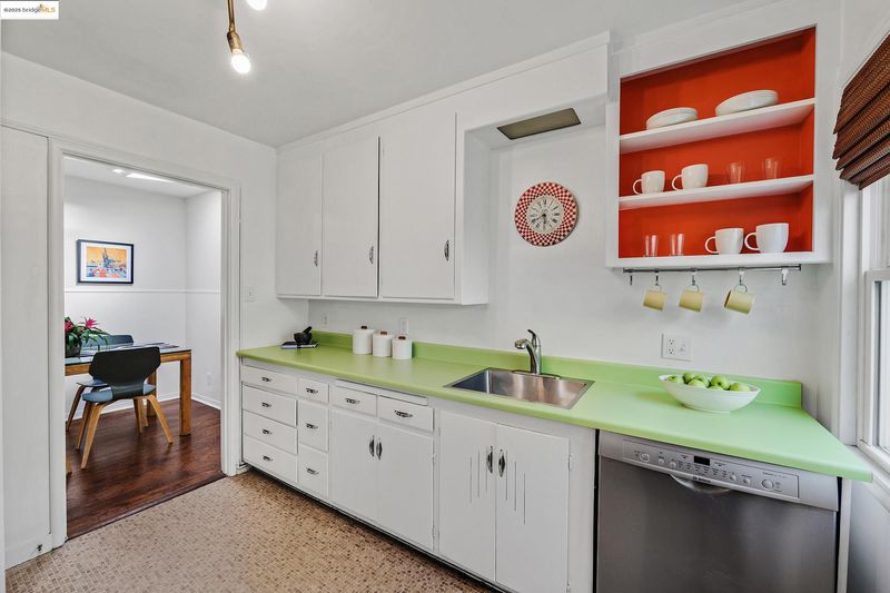 This sweet, cottage-style, level-in 2 bed/1 bath feels like something out of a children’s storybook—offering a happy, simple life! The sunny living room with warm wood floors flows to the dining space with a skylight. And the charming kitchen with a bright green countertop and orange accent cabinet set amongst stainless steel appliances, are sure to delight. Two bedrooms look out to the backyard and share a bathroom with crisp white tile and built-in storage cabinets. Just off the dining area is a laundry room with a washer and dryer and more storage cabinets. And what was formerly the garage has been enclosed to be used as you wish—maybe an office, workout/yoga room, or art studio. The fully-fenced backyard offers a lush wall of bamboo, rose bushes, a lemon tree and two storage sheds. Adding to its storybook charm are front yard planter boxes, a Little Library, with grownup and kid-level bookshelves, and the nearby summertime Crop Swap--all connecting you with friendly neighbors. The petite size makes it easy to maintain and the location offers car-free convenience. Just a hop and a skip bring you to schools, parks, the library, El Cerrito Plaza, BART, Trader Joe’s, restaurants, Rialto Theater, Farmer’s Market and easy freeway access. Goldilocks says this one is Just Right!