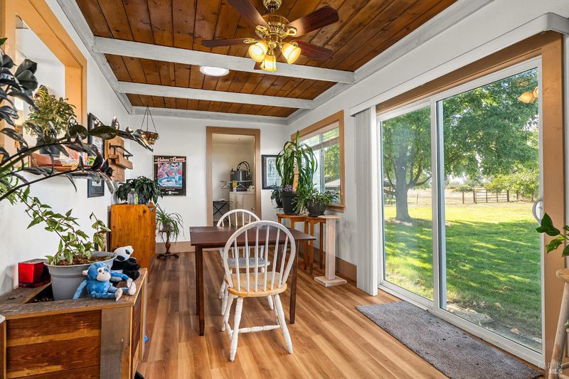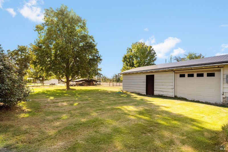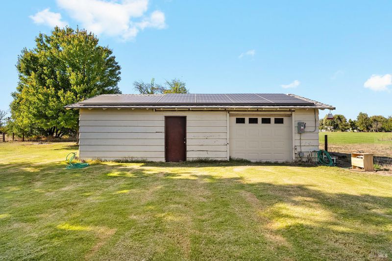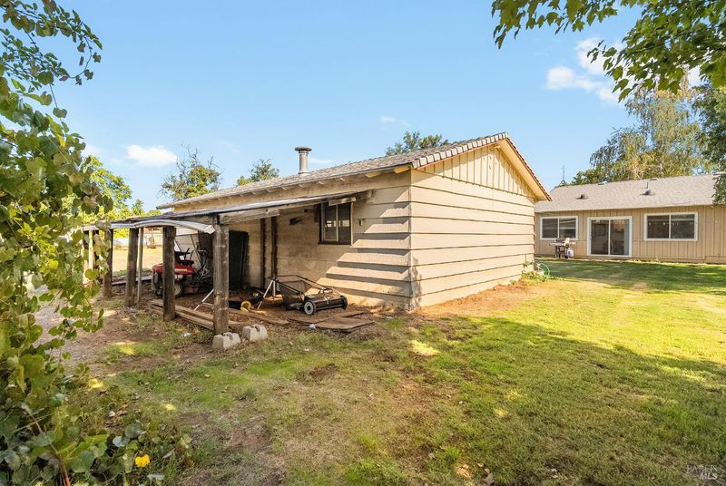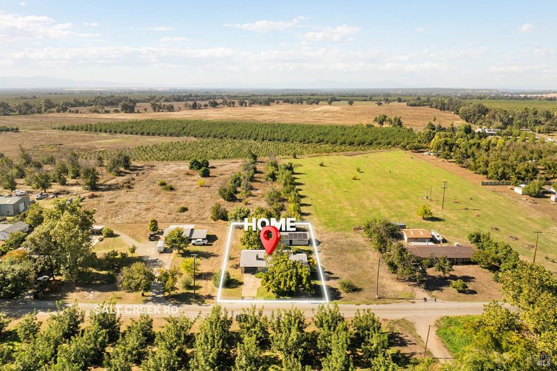 Welcome to 23500 Salt Creek Road, a charming 3-bedroom, 2-bath home set on nearly half an acre along a quiet country road just outside Dairyville. Framed by orchards across the way and open land behind, this property offers the best of rural tranquility with everyday convenience. Inside, you'll find a warm and inviting interior with plenty of natural light. The galley-style kitchen provides ample storage and counter space, opening to a cozy dining area and spacious living room centered around a striking brick fireplace perfect for relaxing evenings at home. The home's efficient layout provides both comfort and functionality, ideal for everyday living or weekend getaways. Outside, the .45-acre lot offers room to garden, play, or simply relax under the shade of mature trees. The property's solar panels power the home, helping to keep energy costs low, while the large detached garage doubles as a workshop with endless possibilities for projects, hobbies, or storage. Located just minutes from Red Bluff and Dairyville, this peaceful retreat blends comfort, practicality, and country charm all in one inviting package.