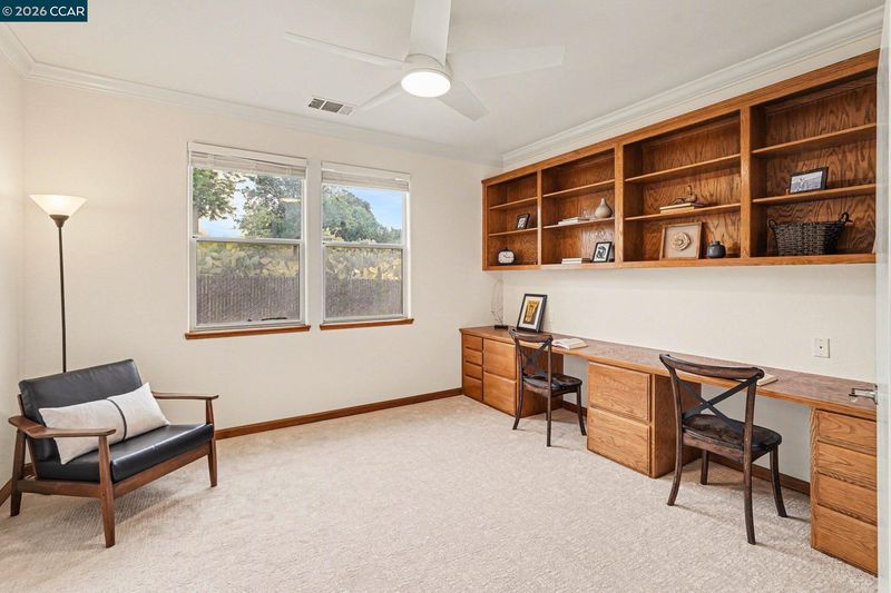 Rare opportunity for its size and location, this 6 bedroom, 3 full and 2 half bath home is in the sought-after Muir Oaks neighborhood on a private lot of almost an acre. Offering approximately 4,887 sq ft, this gated property features a detached 3 car garage plus abundant parking for RVs, boats and more, secured behind a separate fence. The backyard showcases an in-ground pool, spa and scenic views—perfect for entertaining. The main level includes spacious formal living, dining and family rooms, a well-appointed kitchen with island and butler’s pantry, spacious laundry room, and two half baths including one ideal for pool access. The primary suite opens to the backyard and pool, with two additional bedrooms featuring walk-in closets and a shared full bath. Upstairs offers a large bonus room with picture windows and hillside views, two oversized bedrooms with balcony access and gorgeous views, an additional bedroom/office with built-ins, full bath and a huge storage room. Ideal for multi-generational living. Hardwood floors, newer carpet, fresh interior paint, a recently resurfaced driveway, dual zone HVAC, 8 skylights and extensive storage throughout. Close to shopping, restaurants, parks, and schools, and just minutes from vibrant downtown Martinez with easy commute access.