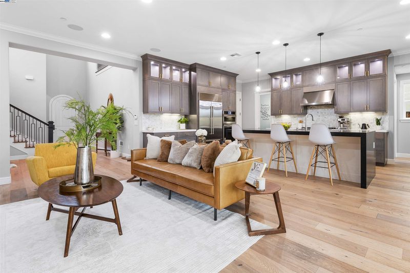 Elegant Toll Brothers Home in Gale Ranch. More than $270K upgrades from builder!!! This beautifully upgraded 4-bed, 3.5-bath residence includes a convenient first-floor guest suite. The open floor plan features a chef’s kitchen with premium cabinetry, granite counters, Sub-Zero refrigerator, full JenAir appliance package (oven combo, cooktop, dual dishwashers, and beverage center), plus a walk-in pantry. The bright great room seamlessly flows to a California room and a luxury covered deck—perfect for entertaining—while capturing breathtaking San Ramon hill views. Additional upgrades include wide-plank hardwood floors, custom fireplaces, wrought-iron staircase, enhanced windows and doors, and a whole-home water softener. Upstairs, enjoy a spacious loft, laundry room, and a spa-inspired primary suite featuring a freestanding tub, oversized shower, and dual walk-in closets. Community amenities include a resort-style pool, spa, gym, and clubhouse. Conveniently located near top-rated San Ramon schools, parks, shopping, and dining.